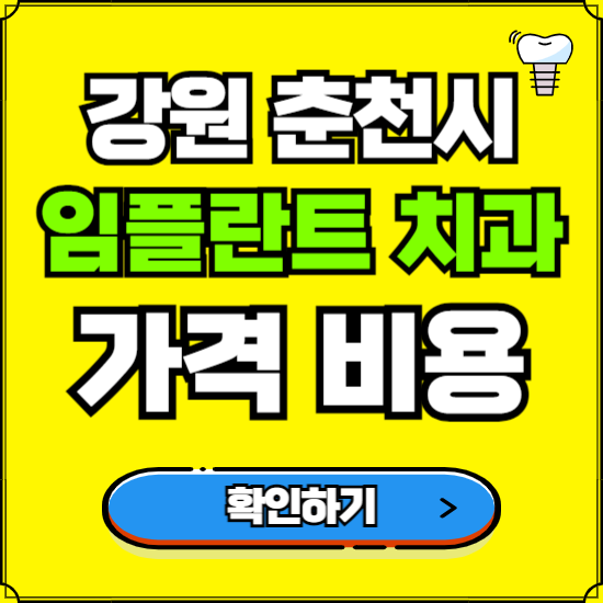 강원 춘천시 지역 "임플란트 치과 병원"에 방문하시기 전에 정확한 임플란트 가격과 의료보험 적용, 진료 정보를 미리 확인해볼 수 있는 방법을 자세히 알려드리도록 하겠습니다. 시간이 없으신 분들은 치과 임플란트 가격 먼저 확인해보시죠.