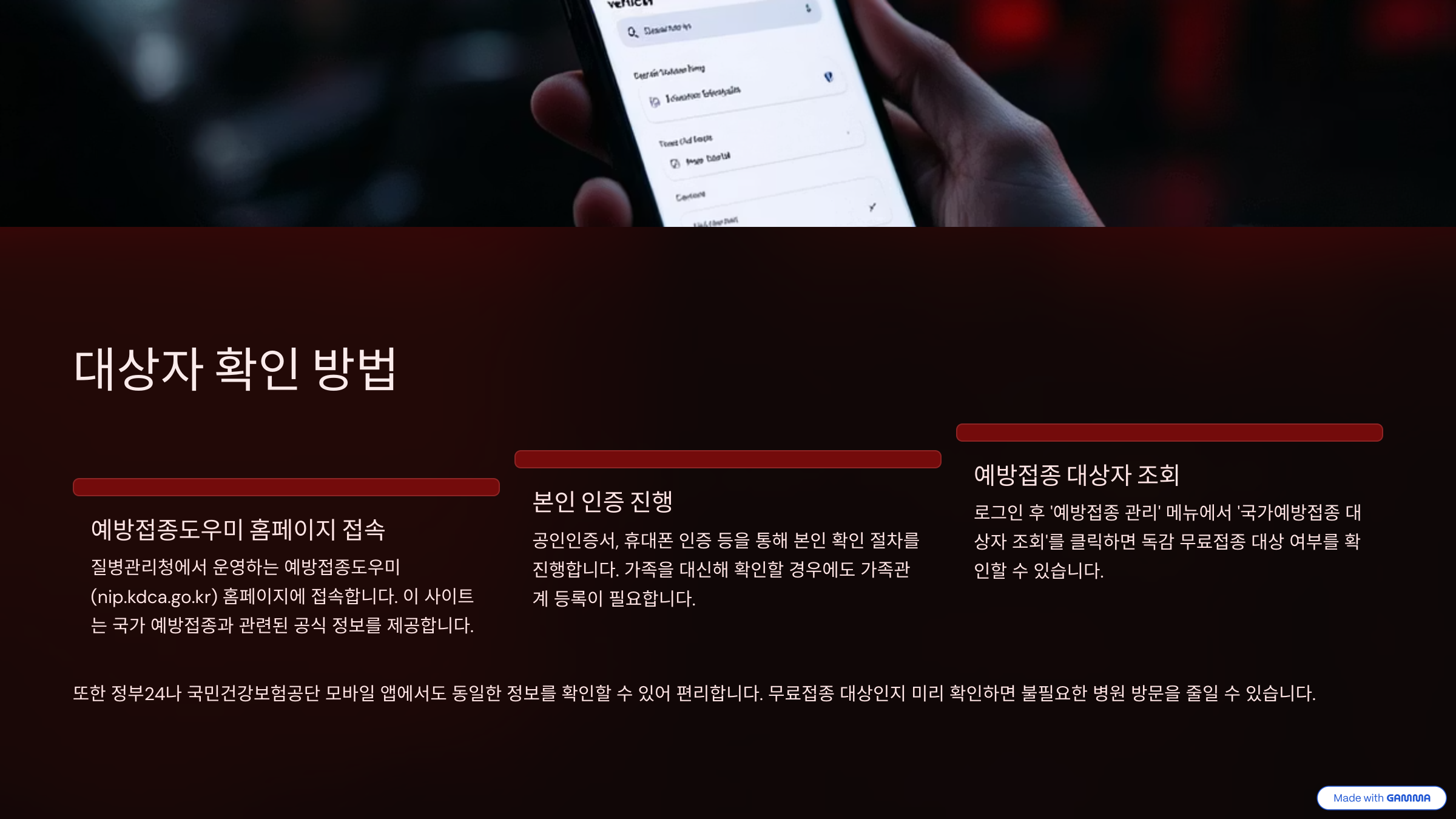 특히 만성 폐질환, 심장병, 당뇨병 등의 지병을 앓고 있는 분들은 독감이 폐렴, 심부전 등으로 이어질 수 있으므로 반드시 예방접종을 권장합니다. 무료 대상에 해당되는지 모르겠다면, 질병관리청 예방접종도우미 홈페이지에서 실시간 조회가 가능합니다.
